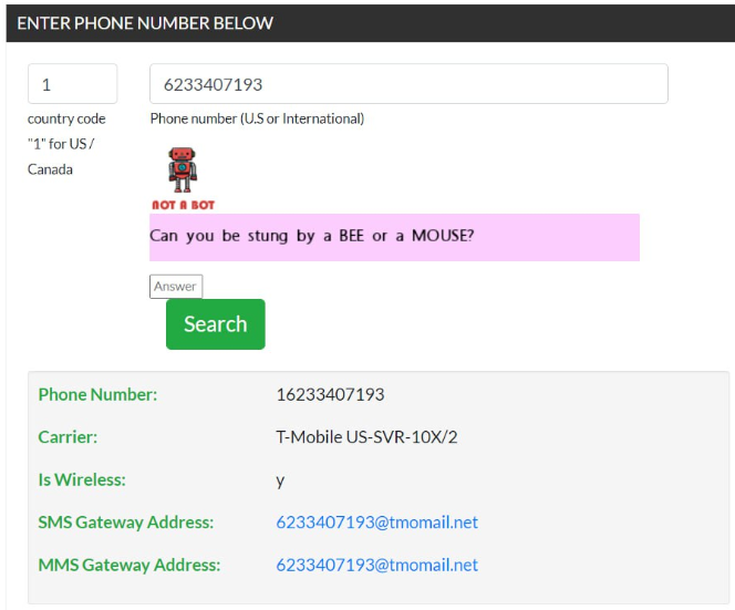 如上圖,輸入電話號碼查詢,如果is Wireless顯示的是y,說明是實卡號碼,可以用來注冊GV。