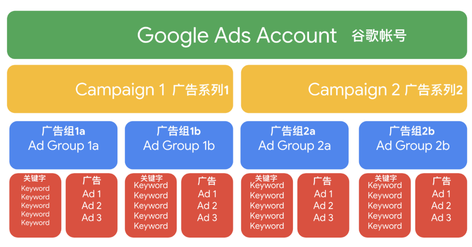 Google Ads 帳號可投放一個或多個廣告系列,每個廣告系列包含一個或多個廣告組。