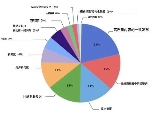 根據(jù)First Page Sage的數(shù)據(jù),排名靠前的Google排名因素包括高質(zhì)量內(nèi)容的持續(xù)發(fā)布、元標(biāo)題標(biāo)簽中的關(guān)鍵字、反向鏈接、利基專業(yè)知識、用戶參與度、新鮮度和可信度: