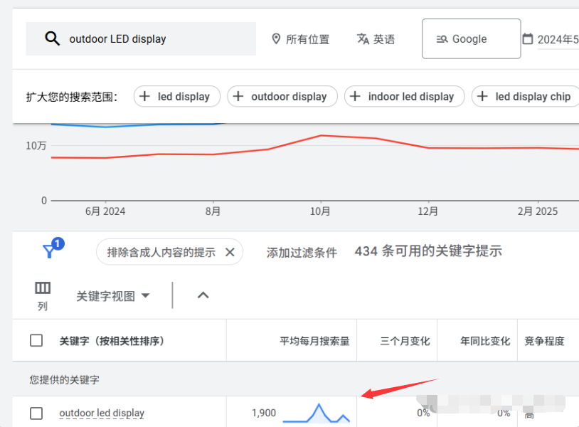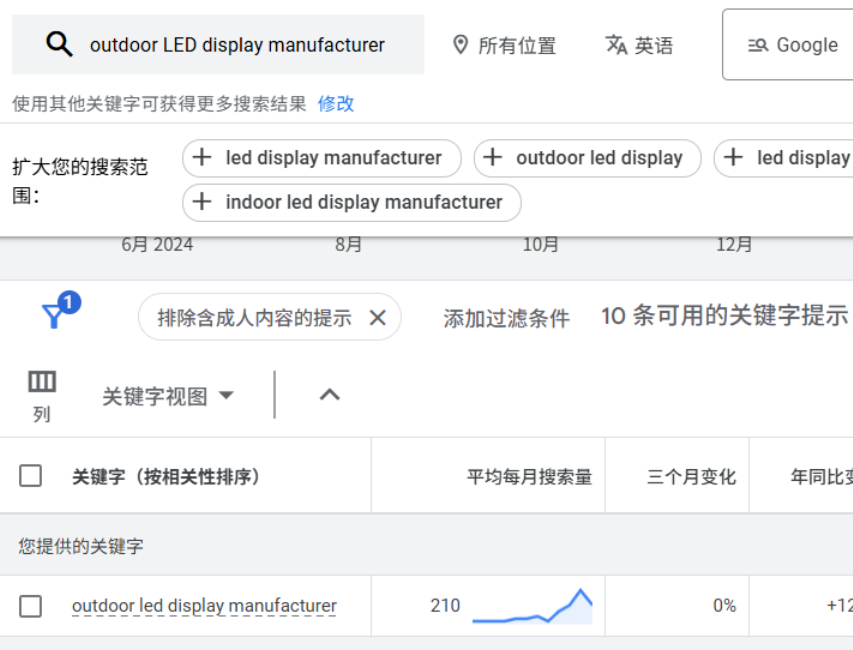 “outdoor LED display” 的搜索意圖與SEO價值,如圖: