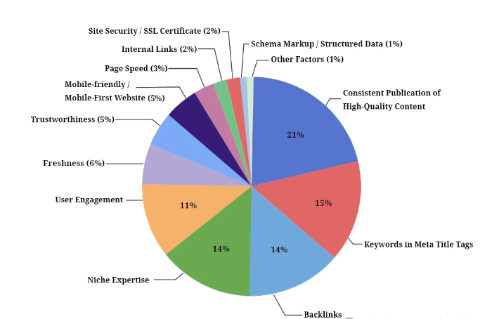 這個因素還是保持在15%,說明標題還是很重要,這個也很好理解,所以取一個非常吸引人的標題真的非常重要。特別是Google會根據標題里包含的關鍵詞,優先去滿足用戶的搜索意圖。