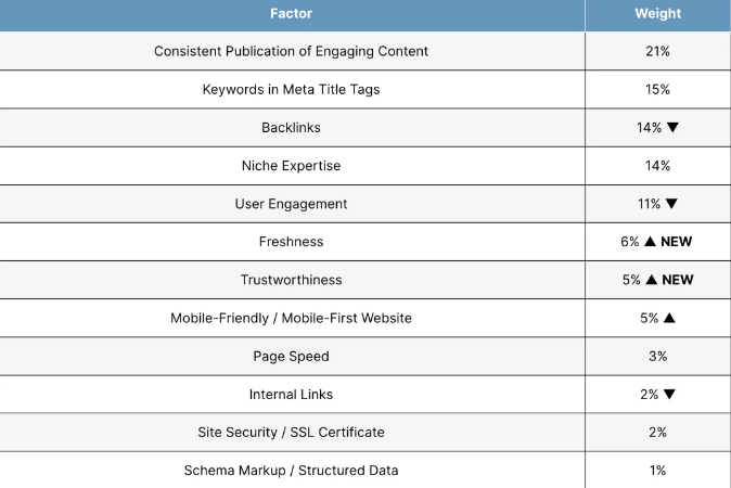好了,回歸正題,這次只關注Google的SEO更新內容,以后有機會再來介紹一些其他平臺的SEO內容。首先放上這次大更新后的SEO影響因素。