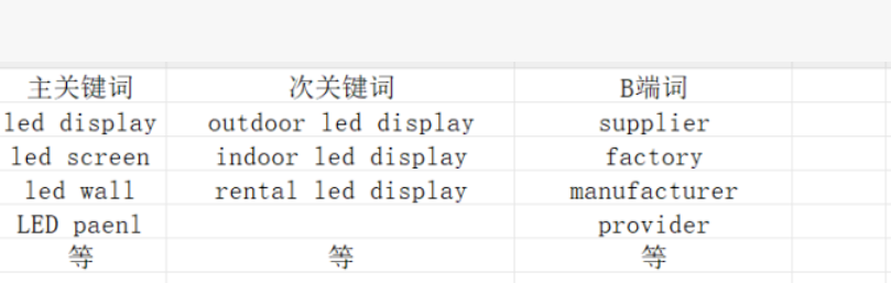 例如,“LED display”是主關鍵詞。