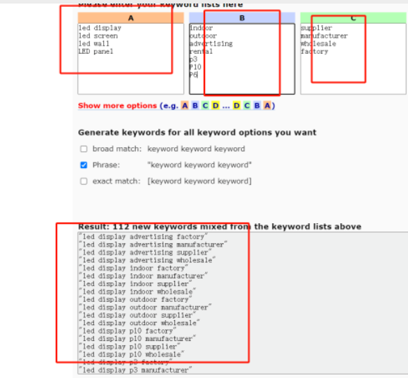 用工具實現:關鍵詞排列組合,擴展關鍵詞庫。