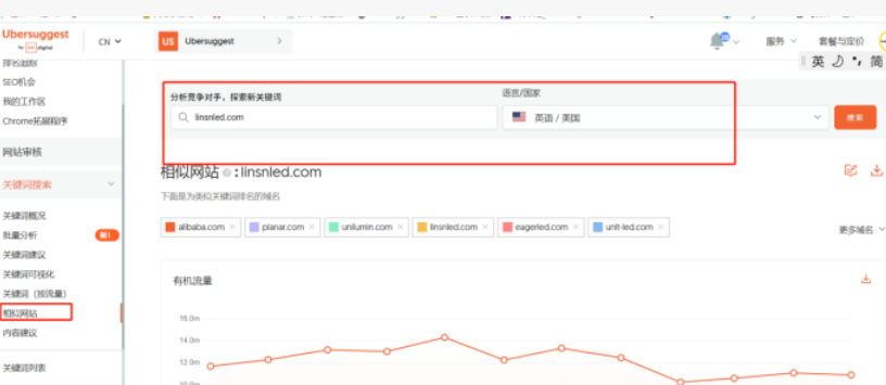 此外,最省事的其實就是分析和模仿競爭對手。先把一些他們排名不是太好的關鍵詞先優化上來。如何找競爭對手,可以用SEMrush或者Ubersuggest.如圖:
