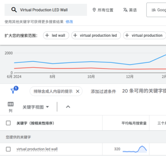 虛擬LED屏/Virtual Production LED Wall/搜索量320,如圖: