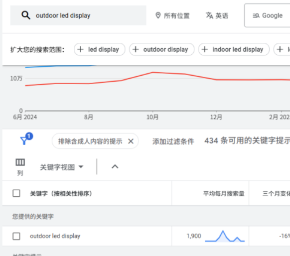 下面以我們熟悉的LED顯示屏客戶(hù)行業(yè)來(lái)舉例。希望大家能更好的理解行業(yè)意圖,如何從谷歌SEO關(guān)鍵詞源頭上篩選出幾十或者上百萬(wàn)的訂單?