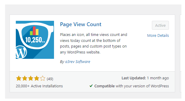 在WordPress后臺(tái)插件里搜索page view就可以看到很多這樣的插件,我使用的是這一款。
